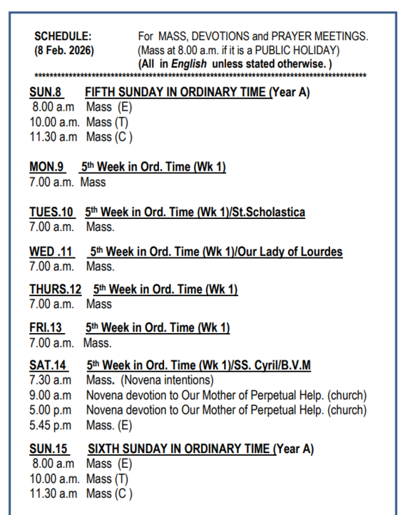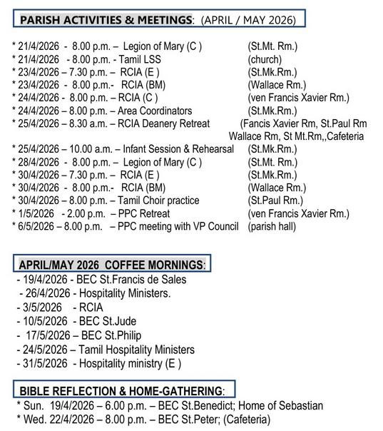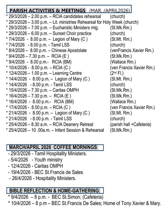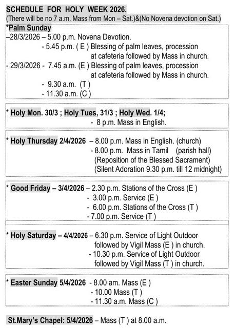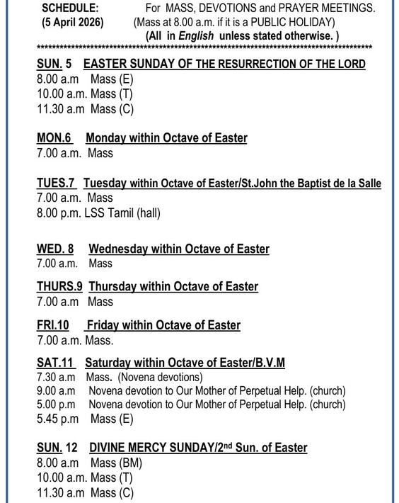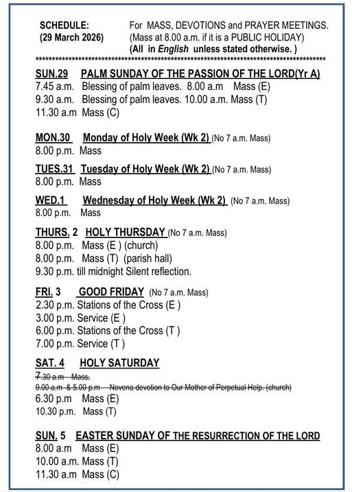 | OMPH Ipoh | Novena Devotions, Mass Times and Other Services | Marriage Preparation | Pastoral Letters, Chancery Notices | Bulletin Archive |
