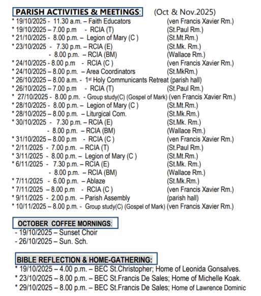 | PARISH ACTIVITIES & MEETINGS | ||||