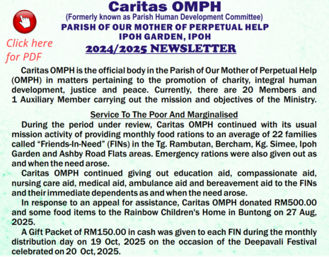 | OMPH Ipoh | Novena Devotions, Mass Times and Other Services | Marriage Preparation | Pastoral Letters, Chancery Notices | Bulletin Archive |