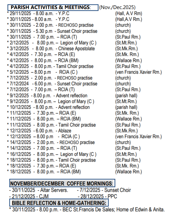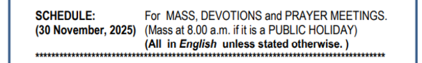 SCHEDULE for SACRAMENT OF RECONCILIATION